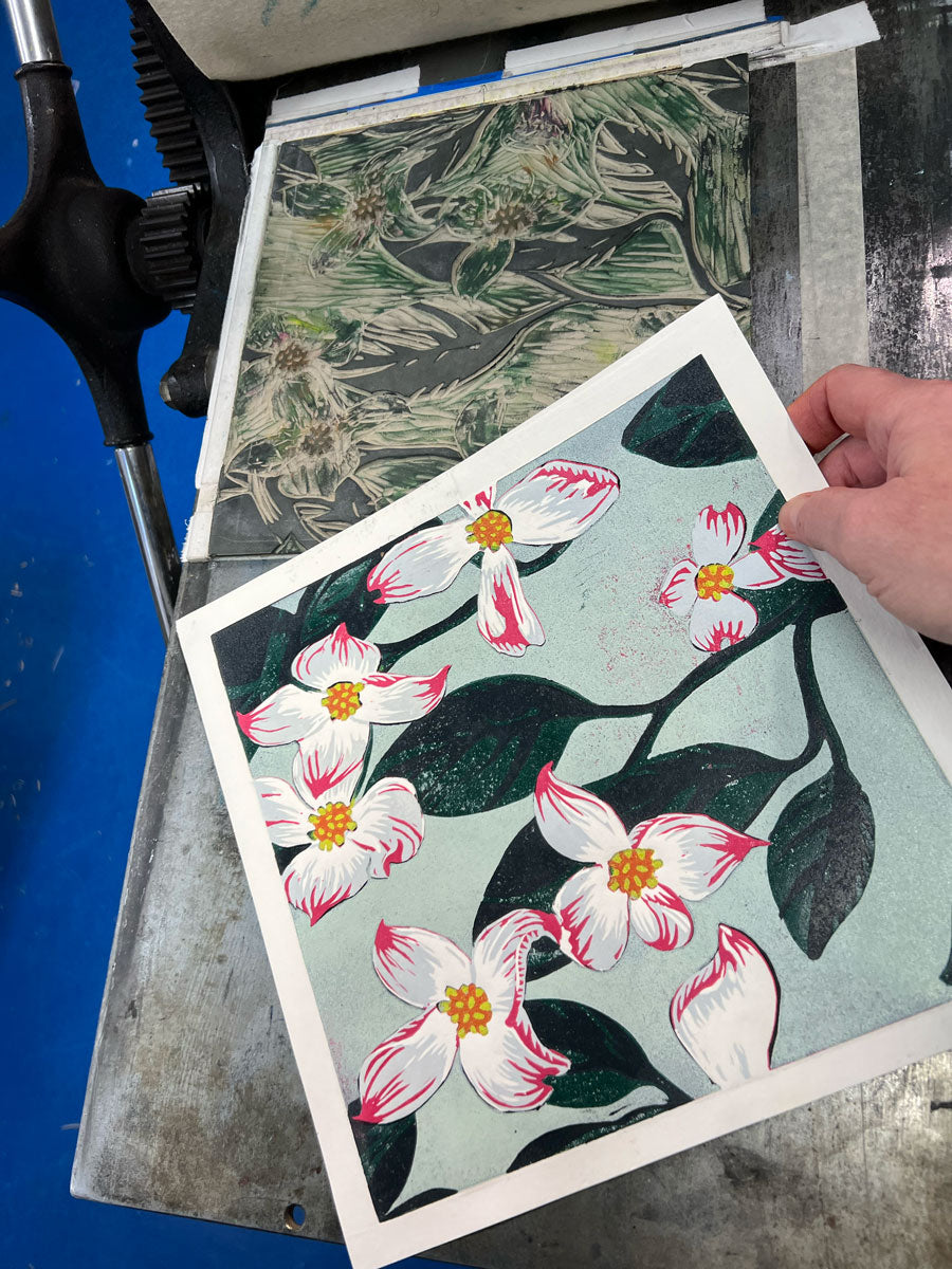 Linoleum relief printmaking melds my three passions carving, printmaking and oil-based inks into one medium. Printmaking is a powerful tool that can be applied leather, paper wood to create an endless array of art, craft, apparel or toy creations. My subject